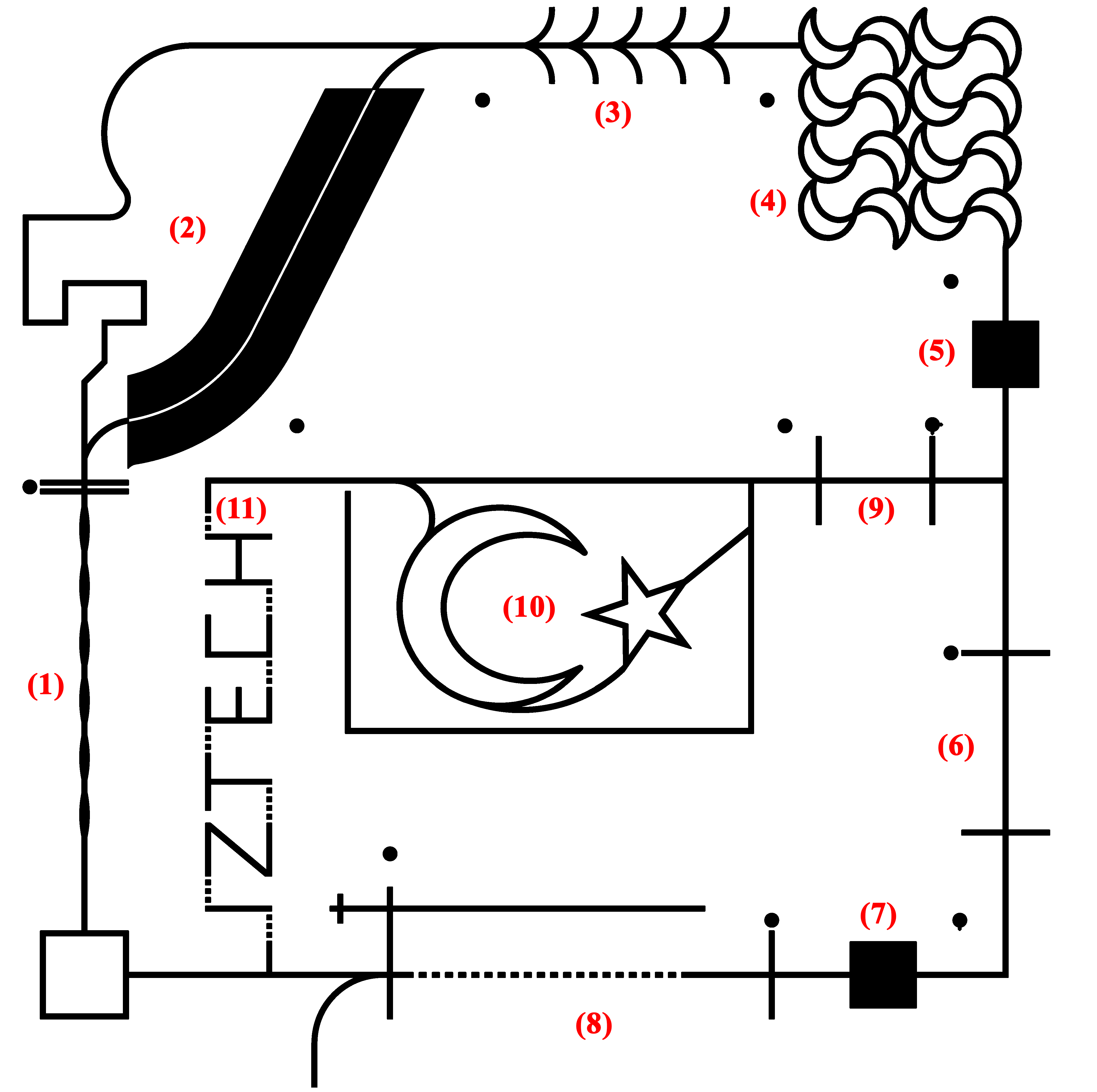 20) ‘Türk Bayrağı’ Etabı (10 – İkinci Gün): Bu etapta robot, Türk bayrağındaki ay ve yıldızı takip etmelidir. Kısa yolu (bayrağın üst kısmındaki düzlüğü) kullanması halinde 4 numaralı ceza uygulanır. Resimde de görüldüğü üzere, önce yıldızı geçip ardından hilal üzerinde ilerlemesi beklenmektedir, hilalin iç ya da dış kavisi kullanılabilir, sonsuz döngü ya da pistten çıkma durumunda hakem kararıyla 2 numaralı ceza uygulanır ve robot en son geçtiği kontrol noktasından yarışmaya devam eder. Bu durum en fazla 2 defa tekrarlanır.