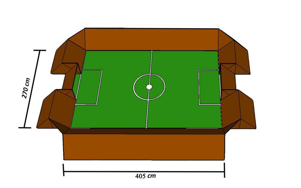 - Robotlar, 270 cm x 405 cm boyutlarındaki dikdörtgen sahada maç yapacaklardır. Sahanın çevresi en az 30 cm yüksekliğindeki yere dik duvarlar tarafından çevrilmiştir.